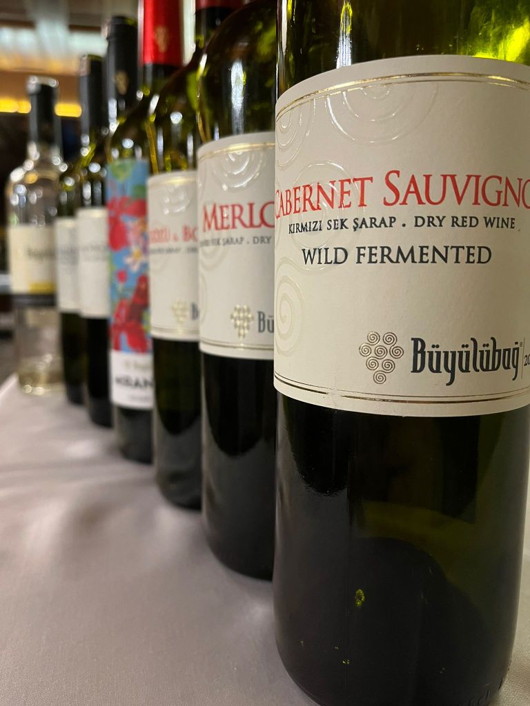 Selçuk Restaurant’ın hazırladığı zengin peynir tabağı eşliğinde yapılan tadımın sonrasında kokoreçli içli köfte, kuzu tandır ve krem karamelden oluşan yemek menüsü ile yine Büyülübağ şarapları içildi.