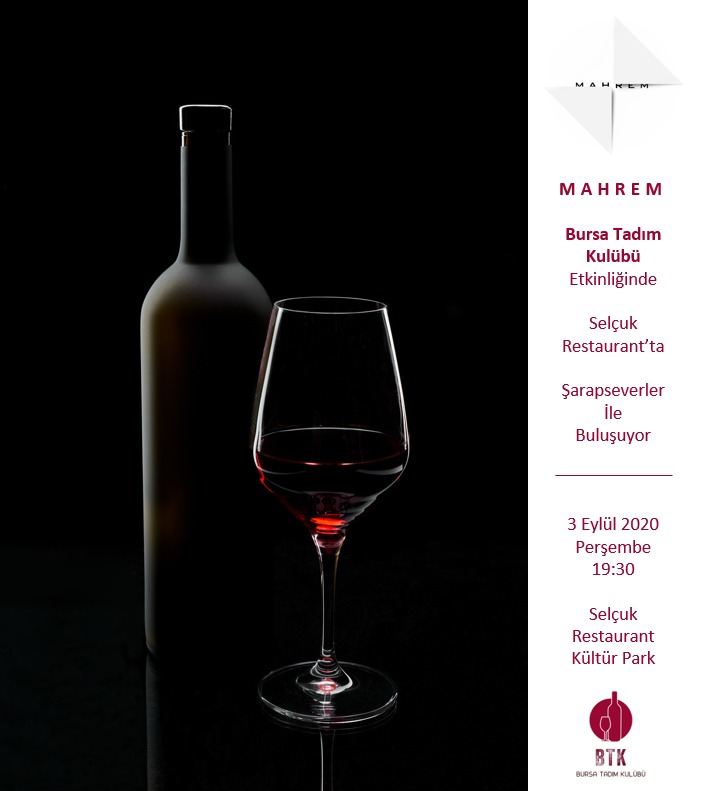 Urla teruarının önemli üreticilerinden Mozaik Şarapçılık tarafından üretilen Mahrem şarapları, Bursa Tadım Kulübü’nün 3 Eylül 2020 Perşembe akşamı Selçuk Restaurant’ta düzenlediği tadım etkinliğinde Bursalı şarapseverler ile buluşuyor.
